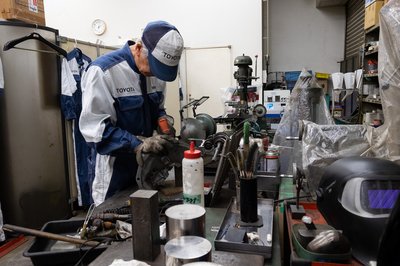 Japán bácsi váltóházat bűvöl. Ellestem a trükköt, nem szárazjeges szórással tisztíttatják az öntvényeket, hanem sziszifuszi munkával, apró, drótfejű fúróval