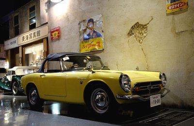 Ennyi kabrió talán sosem volt egy régi japán utcában: balra Honda S600, jobbra Toyota Publica Convertible. A múzeumba ingyenes a belépő!