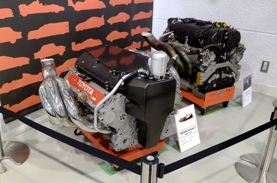 A 2001-es, csalós Toyota F1-motor (RXV01) és a 2002-es Cart-motor egymás mellett