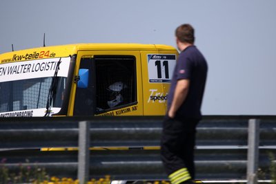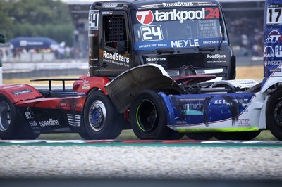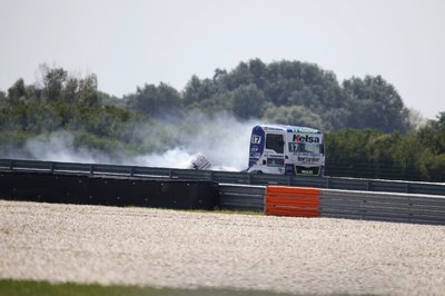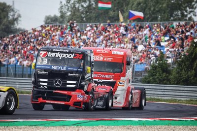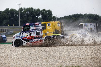 Újra Kamion Európa-bajnoki futamot láthatunk a közelben, a szlovákiai Diósförgepatonyban, a Slovakiaringen rendezik a következő négy futamot. Sokat nem tököltek a többtonnás versenybódékat vezető pilóták, rögtön az első futamon egymásnak estek, szakadta