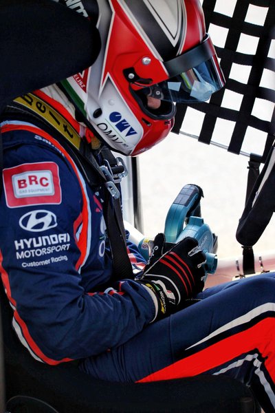 Itt pedig a hétvége másik főhőse, Michelisz Norbi aszalódik a WTCR szombati első futama előtt a rajtrácson. A bőven 30 fok feletti forróságban hőtükörrel védték a kasznit az átmelegedéstől, illetve Norbi kezét az utolsó pillanatig hűtötték, hogy végig bír
