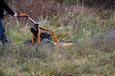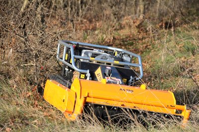 Négy, traktormintás gumikerék a jobb tapadásért és a kisebb talajterhelésért, négy acélpenge a könyörtelen aprításért