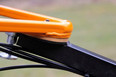 Komoly csőkeret védi a technikát, a dőlésérzékelő műszer itt csak informál