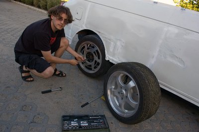 Tízliteres tank a platón, a Corvette kerekek eredetiek