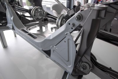 A hátsó futómű segédkerete is nagyszilárdságú acél, hegesztett merevítésekkel
