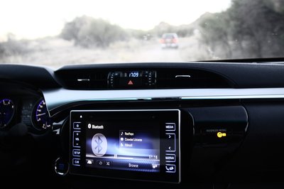 Abból, hogy milyen kicsi fent a másik Hilux, talán érezni, hogy itt nem olyan egyértelmű a közlekedés