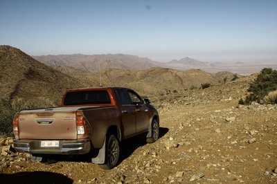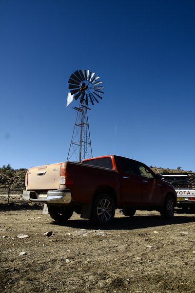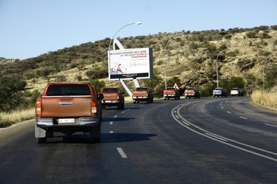Windhoek szélén nyugdíjasoknak szóló hirdetés. A Hilux régi név, de nyugdíjba nagyon nem megy