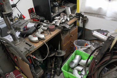 Munkapad a kellékekkel: a sok alapanyag sok megrendelésre utal