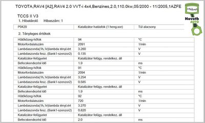 Katalizátor hatásfok hiba a hozzá tartozó paraméterekkel