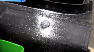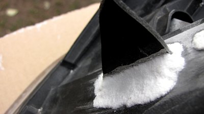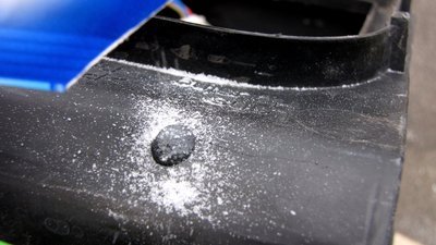 Eredetileg csak két milliméter szélesen fogta volna a ragasztó - egy köhintésre letörik az ilyen javítás. Így, viszont, mindkét oldalon pillanatragasztóval kevert szódabikarbónával már nagyon erősen rögzítettem a műanyag darabot