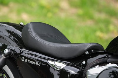 Sportster 48 sajátosság: a peanut tank és az egyszemélyes ülés nem ér össze