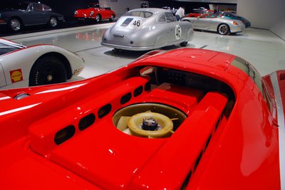 908/02 Spyder, a bambanő. 1969-es, 3.0 literes, 350 lóerős, az 1969-es Targa Florio győztese. Titán kerékagyak, 600 kg tömeg