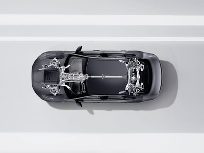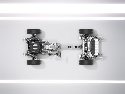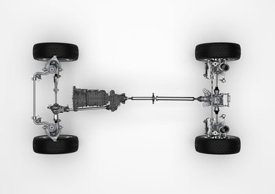 Az F-Type összkerékhajtási rendszere: a váltó mellett látszik a kardán, ami az első tengelyt hajtja