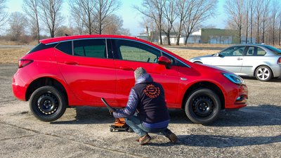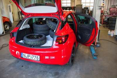 Tesztgumikra vár a tesztautó: a tavalyi Év Autója, az Opel Astra 1.4 Turbo itt még a gyári kerekein