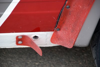 Átalakított küszöb és emelőbakok. A flepni azért kell, hogy ne menjen be a sár