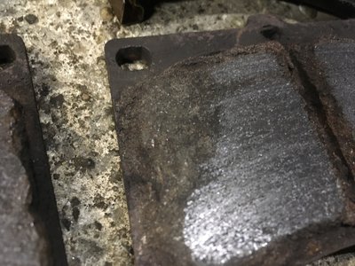 Közelről jól látszik, hogy milyen sok morzsolódott le magától - ott a tárcsa hozzá sem ért. És nem is ez az igazi baj, hanem, hogy kis erőbehatásra egyszerűen leesett a vasról a ferodo