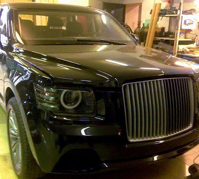Az elnöki terepjáró prototípusa előlről. Itt is megjelennek majd a fényszóróban a nemzeti színű LED-ek