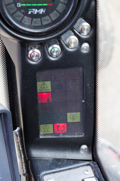 A visszajelzők. Mint minden sportos gépnél, itt is a motor fordulatszáma a központban