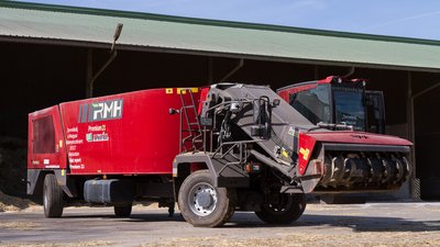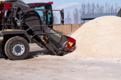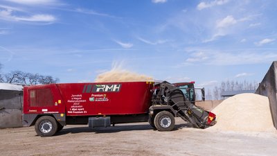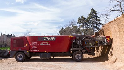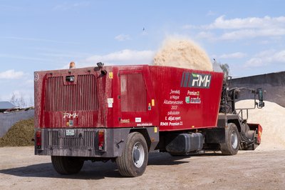 Egy 65 centi széles szalag szállítja a gép bendőjébe a takarmánykeverék összetevőit