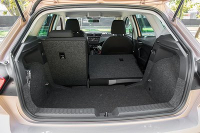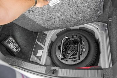 Szokásos emblémabillentéssel nyílik a csomagtartó, mint a kisebb VW-termékek mindegyikén