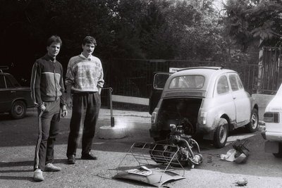 Kedvenc Simsonom 1986 nyarán, háttérben a félkész 500-as Fiatom