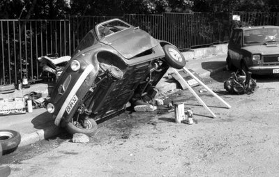 Történelmi pillanat: hármunk Fiat 500-származéka a Pálos utcában a szobám ablakából. Flesch Pityu barátom csodás 500-asa bal fent, Tevan Imi barátom 500-as Puchja kint az utcán, a saját, kopott 500-asom jobb lent