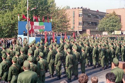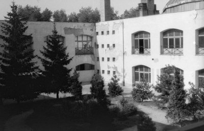 Tata, az úgynezett kupolaépület belső kertje, itt laktak a harckocsizók. Ez a kép elméletileg nem készülhetett volna el