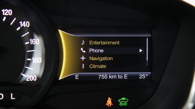 Fordulatszámmérő nincs, cserébe két multifunkciós kijelzőt kapunk oldalt. A bal oldalon a menetbiztonsággal és fogyasztással kapcsolatos dolgokat, a jobb oldalon a központi multimédia-rendszert variálhatjuk.
