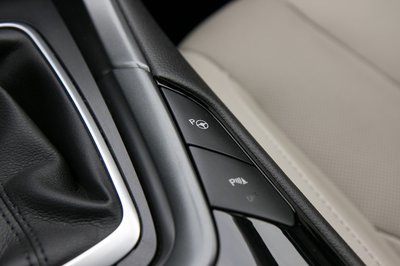 Elegáns formájú a váltókar, oldalt a lejtmenetvezérlő kapcsológombjával.