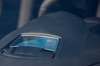 Ez a head-up display, ami egy olcsóbb, de teljesen funkcionális megoldás. Nem a szélvédőre vetít, hanem a felnyíló plexire