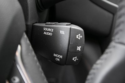 Valamilyen fura logika alapján úgy gondolták a Renault-nál, hogy itt a legjobb hely a tempomat/sebességkorlátozó kapcsoló számára
