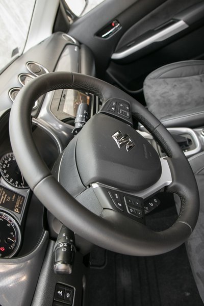 Nem a legfinomabb a kormány bőrözése, de azért jó a fogása