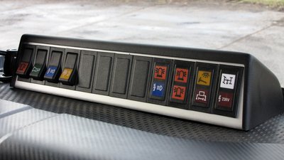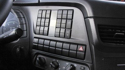 A műszerfalon csak ez a kapcsolópult utal rá, hogy egy tűzoltóautóban ülünk. Innen lehet a megkülönböztető fény- és hangjelzést kapcsolni, és itt világítanak a felépítményspecifikus visszajelzők is