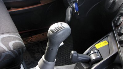 A kisebbik kar a rögzítőféké, a nagyobbik a váltókar, rajta az alsó és felső tartomány választó kapcsolója