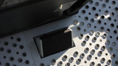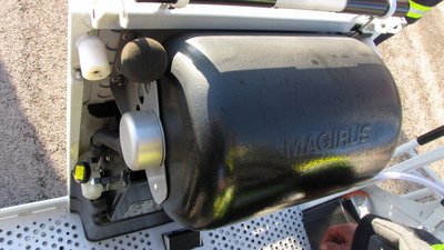 Halottember-kapcsoló a kosárban. Nem a halott embert lehet vele ki-be kapcsolni, azért hívják így, mert ha a pedált nem nyomja valaki (mert elájult, meghalt, akármi), a gép leáll