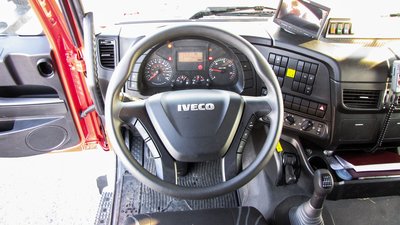 Személyautós méretű a kormány, minden kapcsoló a sofőr közelében van, jól elérhető helyen