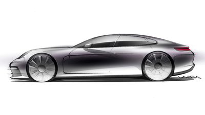 Az aktuális Panamera egyik első design-skicce: elnagyolt, de a főbb vonalakat kihangsúlyozza