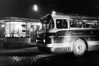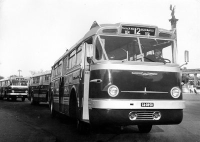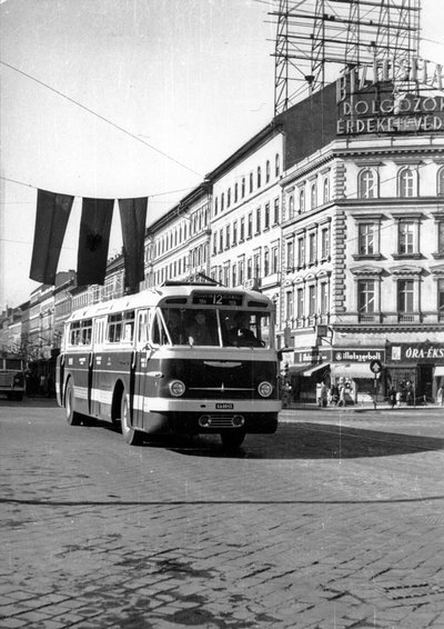 A Tanácsköztársaság megalakulásának negyvenedik évfordulójára fellobogózott Nagykörút macskaköves burkolatán lágyan rugózva, halkan közeledik az egyik új Ikarus