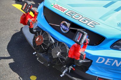 Az autóknak ugyanúgy szükségük van az extra hűtésre, mint a pilótáknak, itt éppen az egyik Polestar Volvo látható a rajt előtti pillanatokban