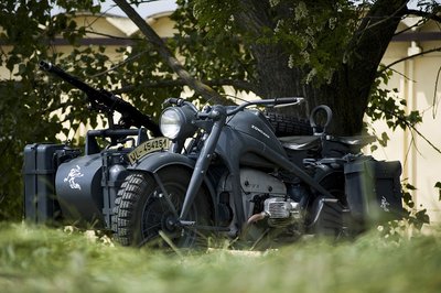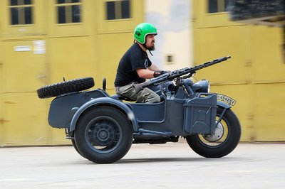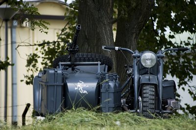 Az oldalkocsi orrán a páncéloshadosztály jelvénye
