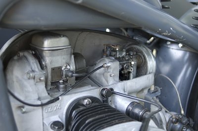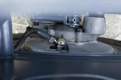 Két csavar oldásával hozzáférünk a karburátorhoz