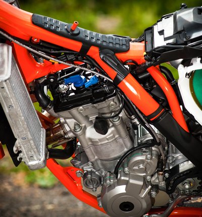 KTM jellegzetesség az áttetsző tank – látható, ha kevés az üzemanyag