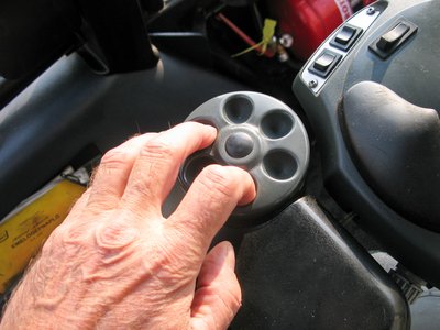 A kerek tenyértámasz alól látszik ki a jobboldali billenőkapcsolós kormány