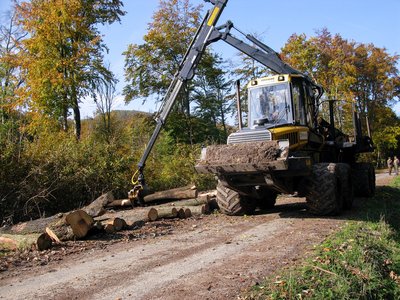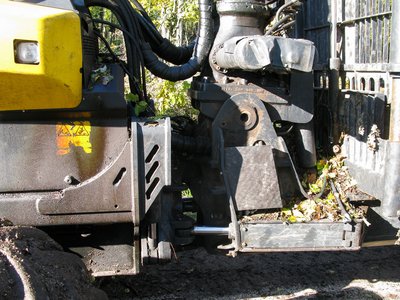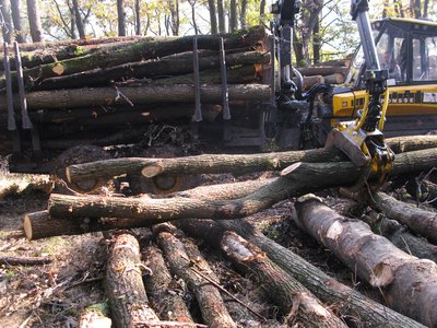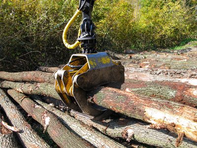 Vékonyabb fatörzsekből egyszerre többet is megmarkol a daru „kanala”