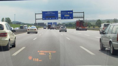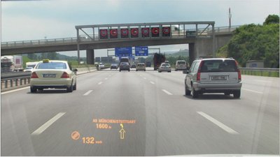 A HUD kivetíti a tempót, a sávfigyelést, a követőradart és a navigáció utasításait