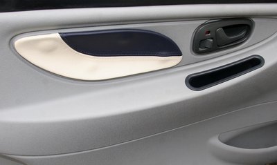 Ajtókárpit, bőrbetéttel. Mintha a kilincs az előző Suzuki Swiftből öltözött volna át…