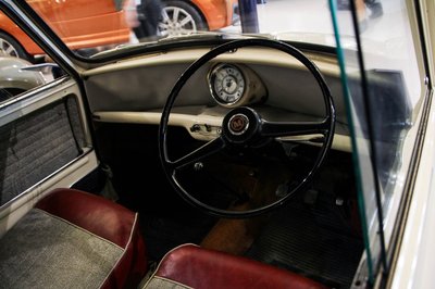 Az első Morris Mini-Minor 1959-ből. Az autózás egyik korszakhatárának jelképe, az orrába zsúfolt hajtáslánc miatti tágas tér, ami azóta szabvánnyá vált, az átgondolt tervezés miatt. Nem csoda, hogy félmilliónál is több készült belőle