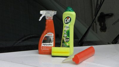 A gépháztető egyik felét a súrolószerrel is átdörzsöltem, a másikat csak a nagynyomású vízzel mostam le
