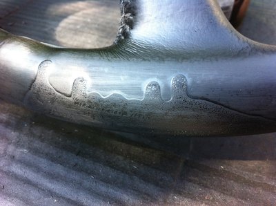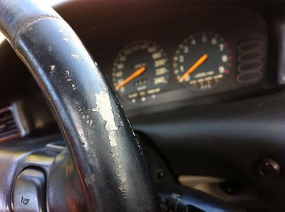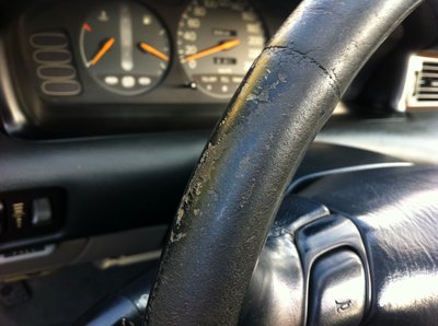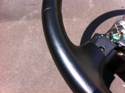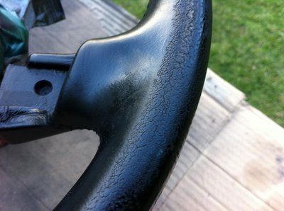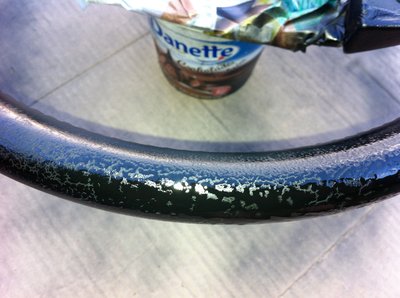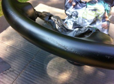 Ez sajnos megfolyt. De semmi pánik, vissza lehet csiszolni, meg aztán ez a kormány hátulján van, csak az a fontos, hogy kézzel ne legyen nagyon érezhető