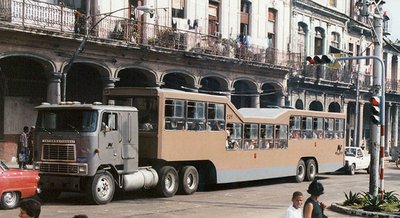 Nyergesvontatóból készült busz. Pink színűből több is volt Kubában